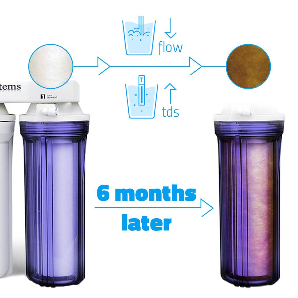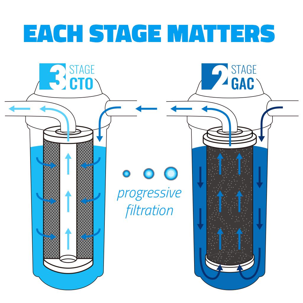 Additional ProtectionThe advantage of having both a GAC & CTO filter is that the loose carbon is better at trapping large contaminants, leaving only smaller ones to the CTO carbon block filter. This allows the CTO filter and RO membrane to function at their maximum efficiency and last longer. |